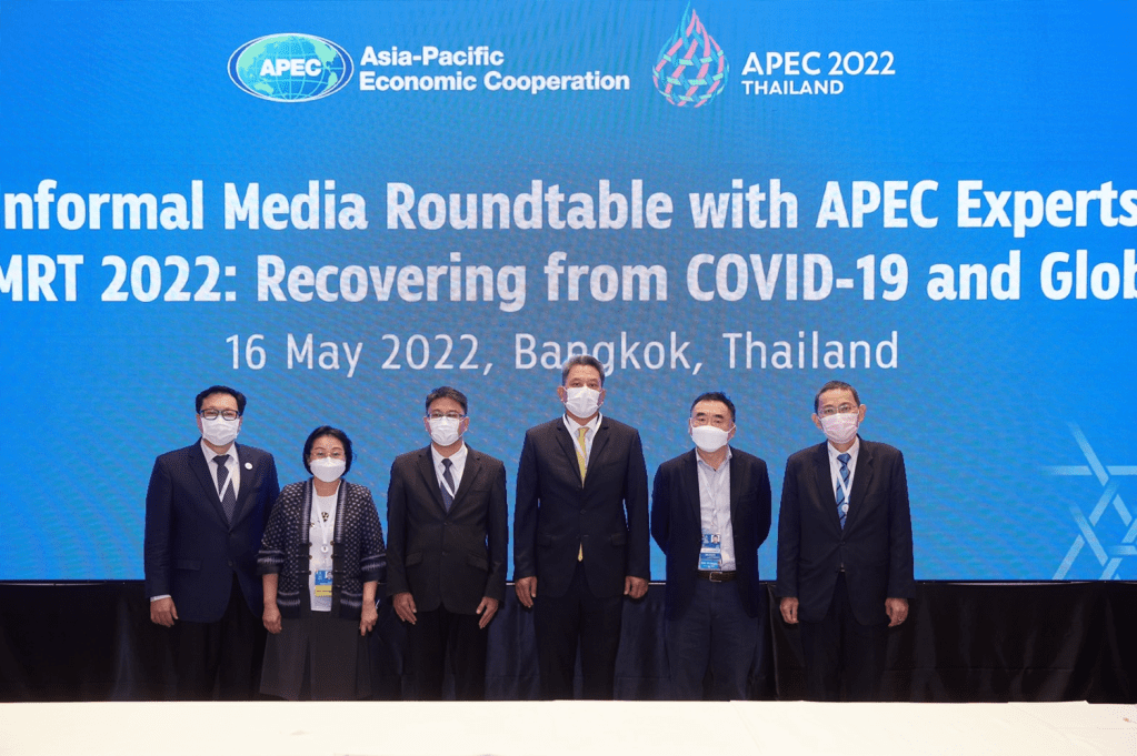 เมื่อวันที่ ๑๖ พฤษภาคม ๒๕๖๕ กระทรวงการต่างประเทศร่วมกับสำนักเลขาธิการเอเปคจัดกิจกรรม Informal Media Roundtable with APEC Experts ในหัวข้อ “Towards APEC to MRT 2022: Recovering from COVID-19 and Global Disruptions” ณ โรงแรมแชงกรี-ลา โดยมีวัตถุประสงค์เพื่อเปิดโอกาสให้สื่อมวลชนไทยและต่างชาติได้รับทราบและแลกเปลี่ยนข้อมูลเชิงลึกกับผู้เชี่ยวชาญที่เกี่ยวข้องเพื่อประโยชน์ในการนำเสนอความคืบหน้าในประเด็นหลัก ๆ ที่ไทยและสมาชิกเอเปคกำลังขับเคลื่อนท่ามกลาง ความท้าทายของโลกในปัจจุบัน โดยไทยในฐานะเจ้าภาพเอเปคปี ๒๕๖๕ มุ่งมั่นที่จะขับเคลื่อนกระบวนการในเอเปคไปข้างหน้าภายใต้แนวคิดหลัก “เปิดกว้างสร้างสัมพันธ์ เชื่อมโยงกัน สู่สมดุล” โดยมีนายธนวัต ศิริกุล รองอธิบดีกรมสารนิเทศเป็นผู้ดำเนินรายการ