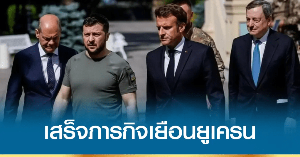 วอร์ซอ 17 มิ.ย. – ประธานาธิบดีเอ็มมานูเอล มาครง ของฝรั่งเศส นายกรัฐมนตรีโอลาฟ ชอลซ์ ของเยอรมนี และนายกรัฐมนตรีมาริโอ ดรากี ของอิตาลี ได้ขึ้นรถไฟเที่ยวกลางคืนวันพฤหัสบดีออกจากยูเครน และเดินทางถึงโปแลนด์แล้วในวันนี้ หลังเสร็จสิ้นภารกิจเยือนยูเครนเป็นครั้งแรกนับตั้งแต่รัสเซียเปิดฉากบุกโจมตียูเครนเมื่อวันที่ 24 กุมภาพันธ์