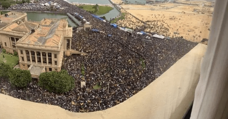 ศรีลังกาเผชิญวิกฤตเศรษฐกิจร้ายแรงที่สุดนับตั้งแต่ได้รับเอกราชจากอังกฤษในปี 2491 ประชาชนขาดแคลนสิ่งจำเป็นในชีวิตประจำวัน และมีการประท้วงมาหลายเดือน จนกระทั่งผู้ประท้วงจำนวนมากมุ่งหน้าเข้ากรุงโคลัมโบเมื่อวันเสาร์ เกิดการปะทะกับตำรวจปราบจลาจลที่พยายามสกัดขบวน มีคนบาดเจ็บมากกว่า 30 คน จากนั้นผู้ประท้วงได้บุกเข้าไปในบ้านพักประธานาธิบดี ตามด้วยการบุกบ้านพักนายกรัฐมนตรีและจุดไฟเผา สถานีโทรทัศน์เอกชนแห่งหนึ่งเผยว่า ทีมข่าว 6 คนถูกตำรวจทุบตีบาดเจ็บระหว่างรายงานเหตุการณ์ที่บ้านพักนายกรัฐมนตรี ขณะที่สภาการแพทย์ศรีลังกาแจ้งว่า โรงพยาบาลต่าง ๆ กำลังขาดแคลนเวชภัณฑ์และไม่สามารถดูแลผู้บาดเจ็บจำนวนมากจากการประท้วงได้.