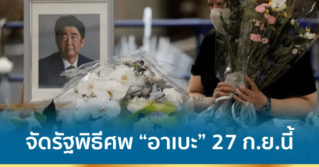 โตเกียว 20 ก.ค.- แหล่งข่าวในรัฐบาลญี่ปุ่นเผยวันนี้ว่า ญี่ปุ่นกำลังเตรียมการจัดรัฐพิธีศพให้แก่อดีตนายกรัฐมนตรีชินโซ อาเบะในวันที่ 27 กันยายน