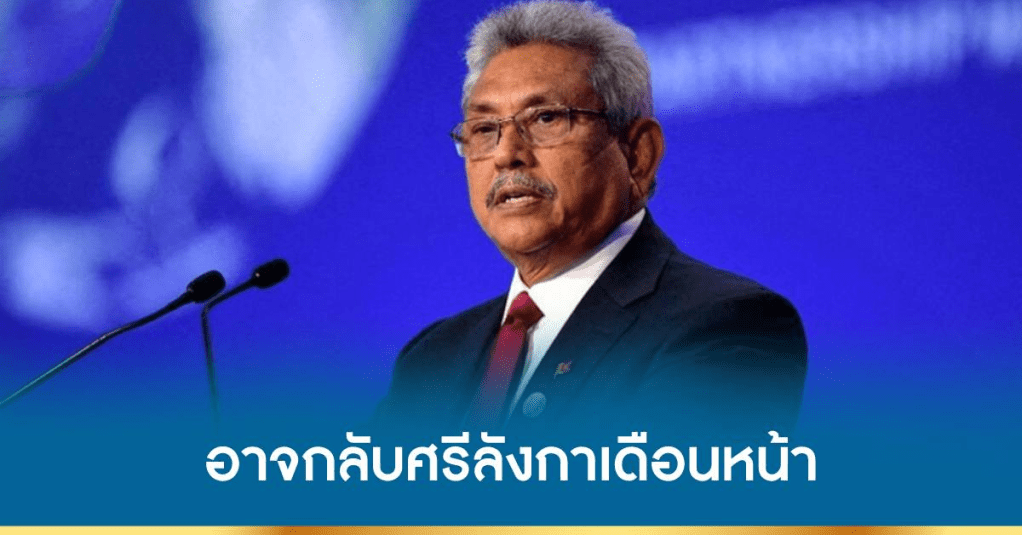 โคลัมโบ 24 ส.ค. – อดีตประธานาธิบดีโกตาบายา ราชปักษา ของศรีลังกา อาจเดินทางกลับศรีลังกาในอีก 2 สัปดาห์ข้างหน้า หลังอดีตผู้นำศรีลังกาต้องหลบหนีออกนอกประเทศจากเหตุประท้วงรุนแรงไปเกาะมัลดีฟส์ สิงคโปร์ และพำนักอยู่ในประเทศไทยขณะนี้