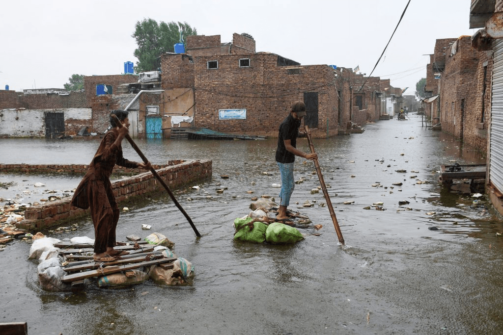 นายกรัฐมนตรีเชห์บาซ ชารีฟของปากีสถานได้เปิดเผยผ่านทางทวิตเตอร์ว่า “หายนะในครั้งนี้เป็นหลักฐานอย่างดีถึงภัยคุกคามร้ายแรงที่เกิดจากการเปลี่ยนแปลงสภาพภูมิอากาศ” อย่างไรก็ตาม แม้ปากีสถานจะมีสัดส่วนการปล่อยก๊าซคาร์บอนไดออกไซด์น้อยกว่า 1% แต่ปากีสถานถูกจัดอยู่ในอันดับที่ 8 ในแง่ของการเผชิญกับอันตรายจากสภาพอากาศ