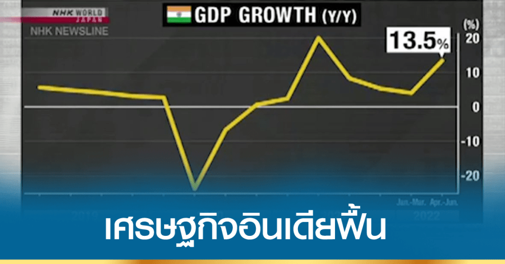 เศรษฐกิจของอินเดียกำลังฟื้นตัวอย่างแข็งแกร่ง หลังผ่านพ้นการแพร่ระบาดของโรคโควิด-19 รัฐบาลอินเดียประกาศว่า จีดีพีในช่วงไตรมาส 2 ของปีนี้ ขยายตัวถึงร้อยละ 13.5 เมื่อเทียบกับช่วงเดียวกันของปีที่แล้ว และเป็นการขยายตัวต่อเนื่องติดต่อกันถึง 7 ไตรมาส ทั้งนี้ เป็นผลมาจากการเติบโตของภาคการผลิต การก่อสร้าง และอุตสาหกรรมการท่องเที่ยว ทำให้เวลานี้ จีดีพีของอินเดียขยายตัวในระดับใกล้เคียงกับช่วงก่อนการระบาดของโรคโควิด-19