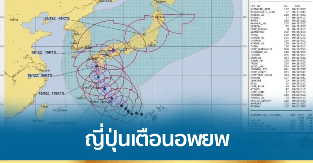 โตเกียว 17 ก.ย. – สำนักงานอุตุนิยมวิทยาญี่ปุ่น ขอให้ประชาชนในพื้นที่บางส่วนของเกาะคิวชู ที่อยู่ทางใต้ของประเทศ อพยพจากบ้านเรือนไปยังสถานที่ปลอดภัยในวันนี้ ก่อนหน้าที่พายุไต้ฝุ่น “นันมาดอล” ที่เป็นไต้ฝุ่นที่ทรงพลังสูงสุด หรือ “ซูเปอร์สตรอง” จะทำให้เกิดฝนตกอย่างหนักในวันพรุ่งนี้