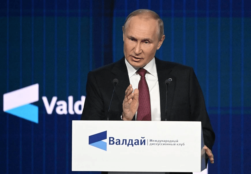 ประธานาธิบดีวลาดิมีร์ ปูติน แห่งรัสเซีย ระบุในวันพฤหัสบดี (27 ต.ค.) ว่าโลกเผชิญกับทศวรรษที่อันตรายที่สุดนับตั้งแต่สงครามโลกครั้งที่ 2 เนื่องจากบรรดาพวกทรงอิทธิพลตะวันตกดิ้นรนพยายามขัดขวางไม่ให้ความเป็นเจ้าโลกของสหรัฐฯ และพันธมิตรต้องล่มสลาย แม้มันเป็นสิ่งที่ไม่อาจหลีกเลี่ยงได้
