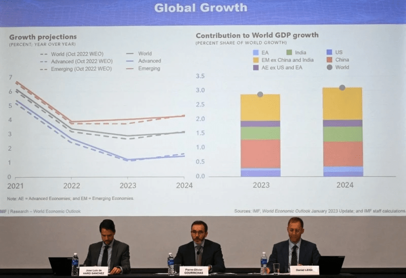 ในรายงานทิศทางแนวโน้มเศรษฐกิจโลกฉบับอัปเดตล่าสุดที่เปิดเผยเมื่อวันอังคาร (31 ม.ค.) กองทุนการเงินระหว่างประเทศ (ไอเอ็มเอฟ) คาดการณ์ว่า อัตราเติบโตของโลกจะลดลงจาก 3.4% ในปี 2022 อยู่ที่ 2.9% ในปีนี้ แต่ยังถือว่าดีกว่าตัวเลขคาดการณ์ในเดือนตุลาคมปีที่แล้วที่ 2.7% และมาพร้อมคำเตือนว่า เศรษฐกิจโลกอาจเข้าสู่ภาวะถดถอยอย่างง่ายดาย