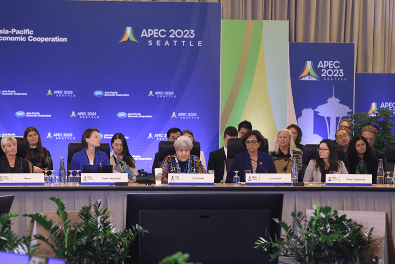 การประชุมร่วมและมีประธานร่วมระหว่างมาริซา ลาโก (Marisa Lago) ปลัดกระทรวงพาณิชย์และการค้าระหว่างประเทศของสหรัฐอเมริกาและ ดร.กีตา ราว กุปตะ (Dr. Geeta Rao Gupta) เอกอัครราชทูตผู้แทนพิเศษด้านประเด็นสตรีโลกของสหรัฐอเมริกา ที่ประชุมได้สำรวจการดำเนินการเพื่อขยายการเข้าถึงธุรกิจที่มีผู้หญิงเป็นผู้ประกอบการในห่วงโซ่คุณค่าระดับโลก การส่งเสริมการเป็นผู้ประกอบการของสตรีผ่านพาณิชย์อิเล็กทรอนิกส์ ตลอดจนเพิ่มทักษะและบทบาทของผู้หญิงในเศรษฐกิจสีน้ำเงิน (blue economy) และเศรษฐกิจสีเขียว (green economy)